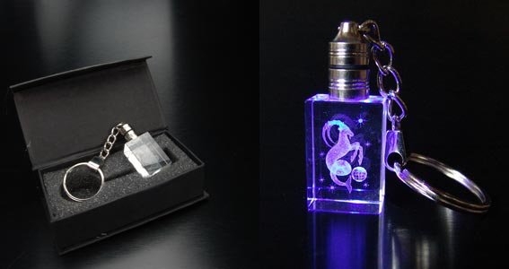 3D - Glasgravur Schlüsselanhänger - mit LED-Blinklicht